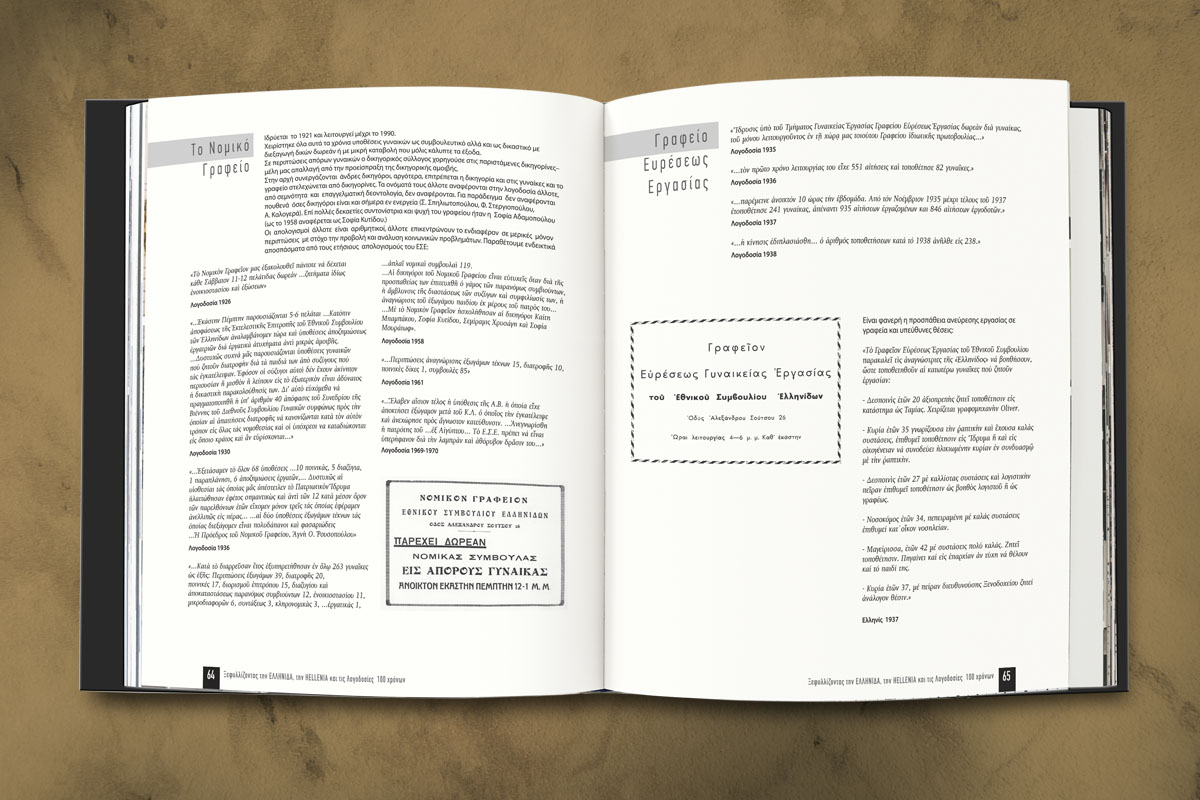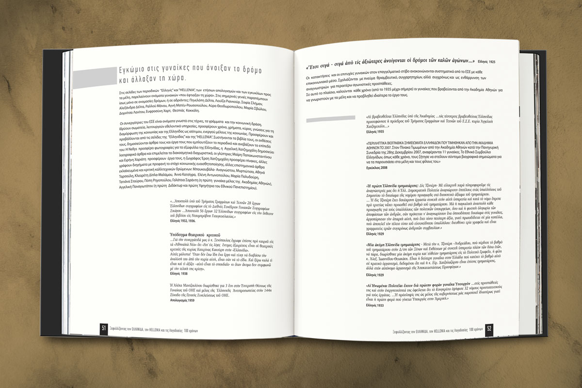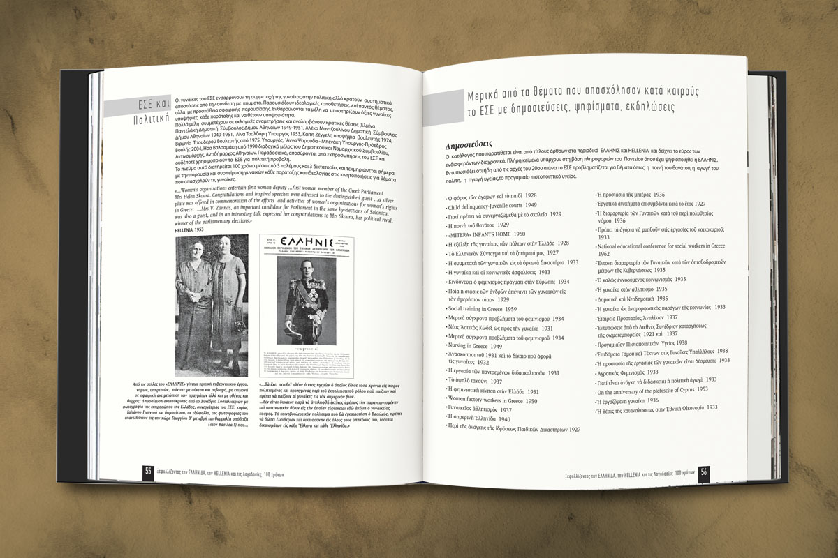 Είχαμε την χαρά και την τιμή να αναλάβουμε την έκδοση για τα 100 χρόνια του Εθνικού Συμβουλίου Ελληνίδων. Μια έκδοση αφιερωμένη στις γυναίκες που εργάστηκαν για την εξέλιξη και την βελτίωση της θέσης της ελληνίδας γυναίκας στην κοινωνία και την πολιτεία.