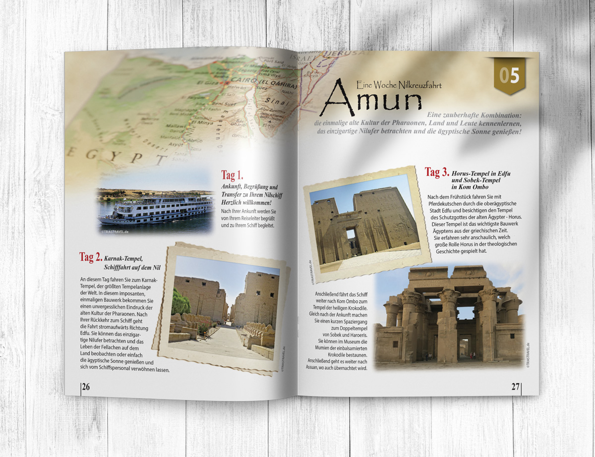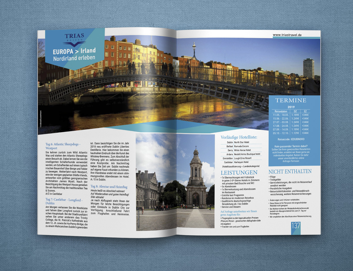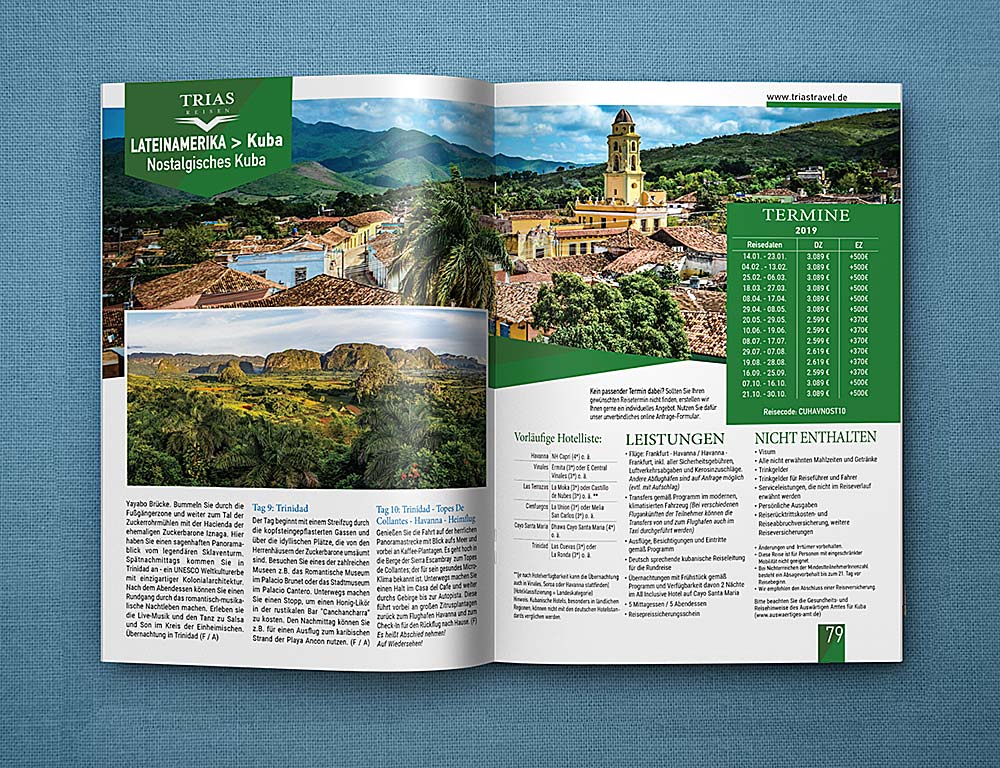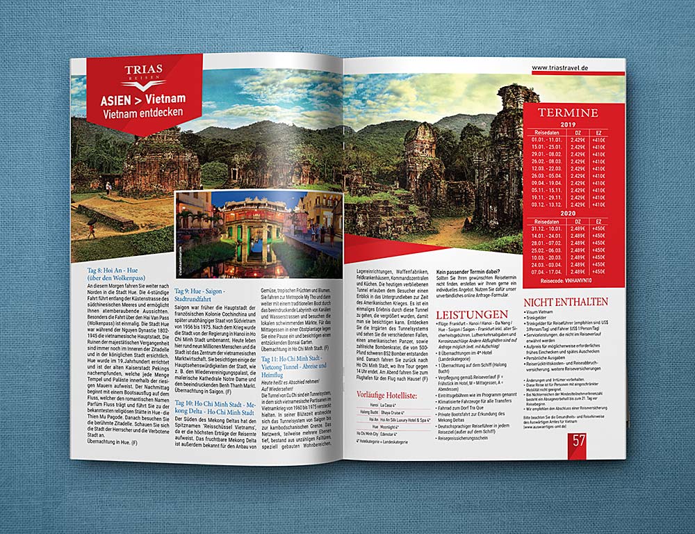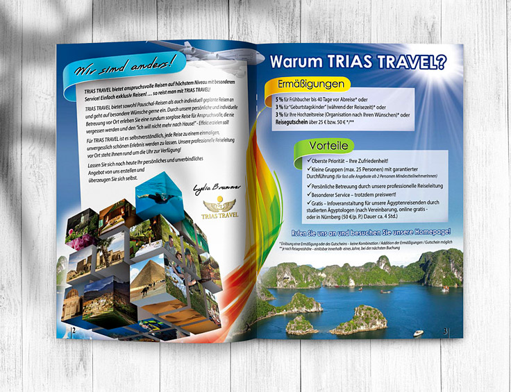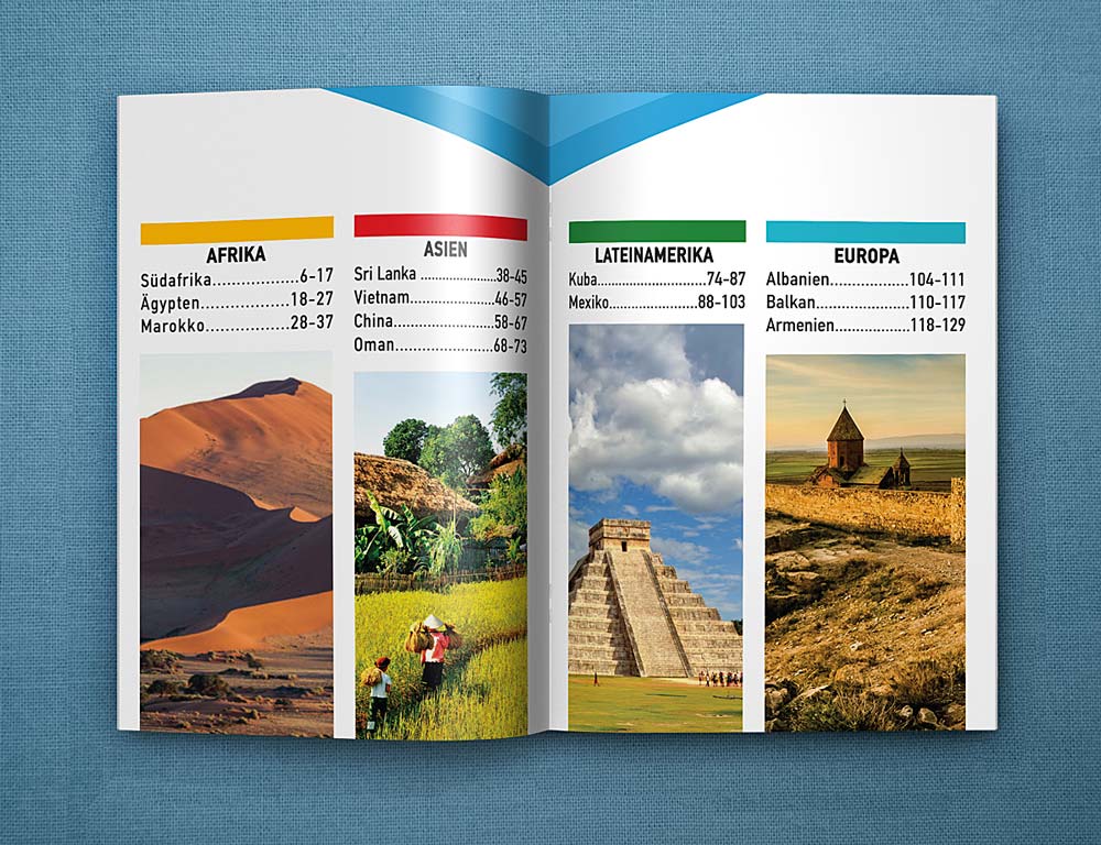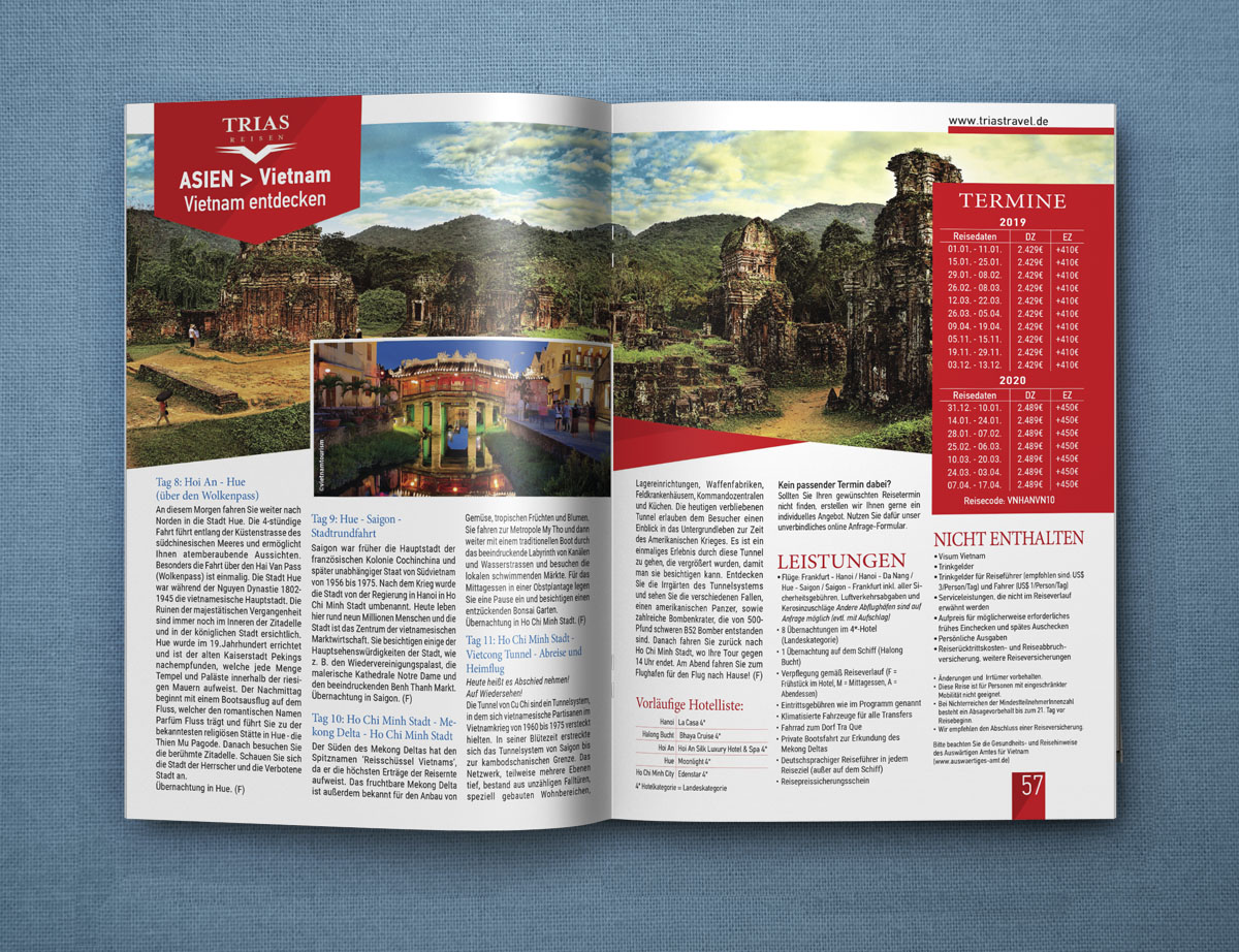 Το τουριστικό γραφείο Trias Travel με έδρα στην Γερμανία μας ανέθεσε τον σχεδιασμό τον ετήσιων καταλόγων με τα ταξίδια που διοργανώνει σε χώρες της Αφρικής, της Ασίας και της Λ. Αμερικής.